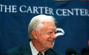 وتابع: «شغل كارتر منصب الرئيس التاسع والثلاثون للولايات المتحدة الأمريكية من 1977 حتى 1981، ونال جائزة نوبل للسلام عام 2002، حيث نشأ في مزرعة في الجنوب الأمريكي وتطور من مزارع لضابط في البحرية الأمريكية».