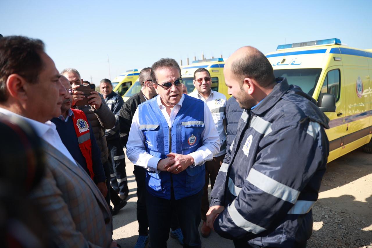 تفقد الدكتور خالد عبدالغفار، نائب رئيس مجلس الوزراء وزير الصحة والسكان، يرافقه الدكتورة مايا مرسي، وزيرة التضامن الإجتماعي، واللواء عاصم سعدون، نائب محافظ شمال سيناء، اصطفاف سيارات هيئة الإسعاف المصرية بمركز أبو طويلة بمدينة الشيخ زويد، وذلك تنفيذًا لتوجيهات فخامة الرئيس عبدالفتاح السيسي، بتقديم كافة أشكال الدعم الصحي للأشقاء في قطاع غزة.