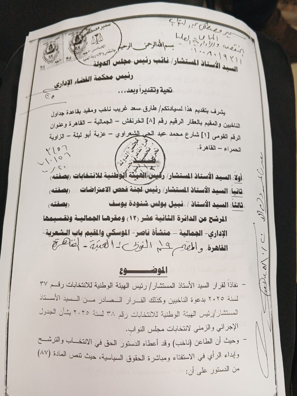 في تطور مثير يهدد شفافية الانتخابات البرلمانية، أطلق محامٌ “قنبلة” موثقة بمذكرة طعن أمام القضاء الإداري، يطالب فيها باستبعاد مرشح دائرة الجمالية والموسكي وباب الشعرية، متهمًا إياه بعدم استيفاء الشروط الدستورية، وبتقديم شهادة تعليمية “مزورة”، وكونه “لا يجيد القراءة والكتابة”.
